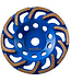 Uitvoering: deze diamantkomschijf heeft boomerangvormige segmenten met maximale afzuigmogelijkheid door de grote stofafvoergaten. De boomerangvorm maakt het mogelijk om moeilijk bereikbare plaatsen te slijpen. De speciaal ontworpen segmentbinding zorgt voor een snelle slijpsnelheid.